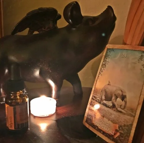 I’m working with my beloved MYRRH essential oil — applied lovingly to my feet and over my heart — to honor exactly where I’m presently parked.